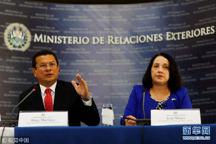 當?shù)貢r間2018年1月8日,薩爾瓦多圣薩爾瓦多,美國駐薩爾瓦多大使Jean Manes(右)與薩爾瓦多外交部長
