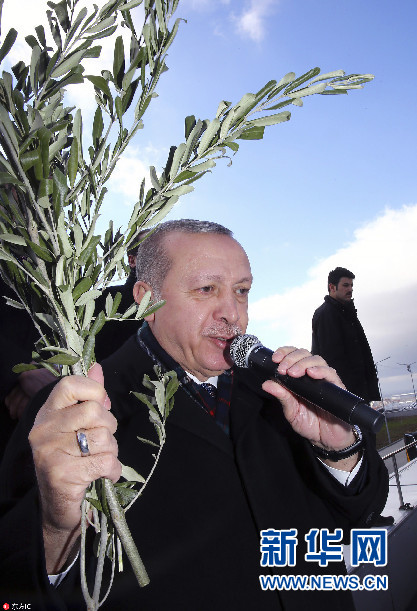土耳其總統(tǒng)埃爾多安出席集會(huì) 手持橄欖枝發(fā)表講話