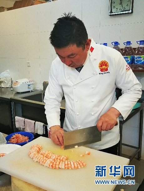 王海威在中國駐津巴布韋大使館準備食材。新華網發(fā)