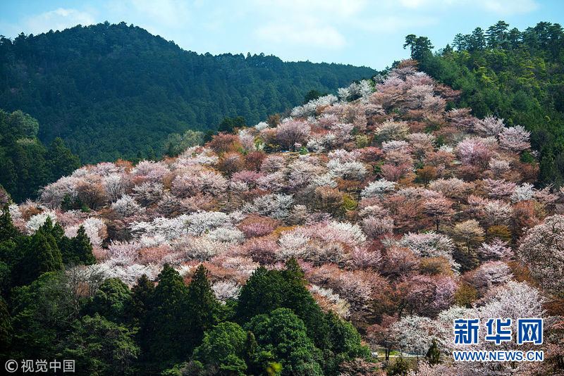 4月3日,日本奈良吉野,當(dāng)?shù)貦鸦ㄊ⒎牛姸嘤慰颓皝碛^賞。(圖片來源:視覺中國(guó))