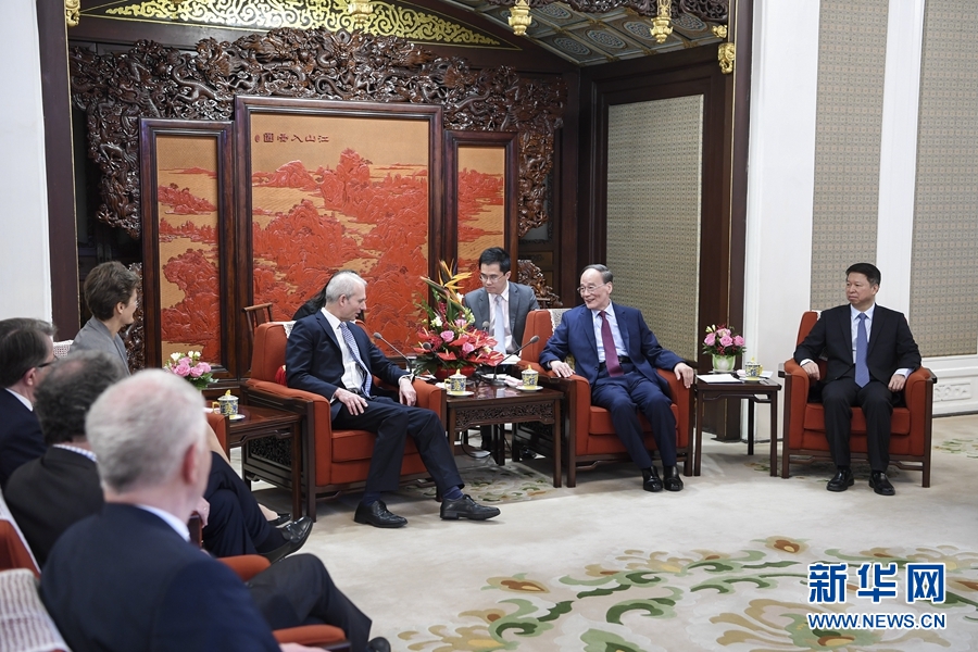 4月11日,國家副主席王岐山在北京中南海會見英國內(nèi)閣辦公廳大臣利丁頓率領(lǐng)的第十屆中英政黨對話英方代表團(tuán)。 新華社記者 張領(lǐng) 攝
