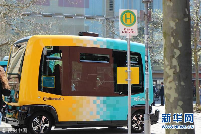 4月17日,德國法蘭克福,法蘭克福應用科學大學測試自動駕駛擺渡巴士。(圖片來源:視覺中國)