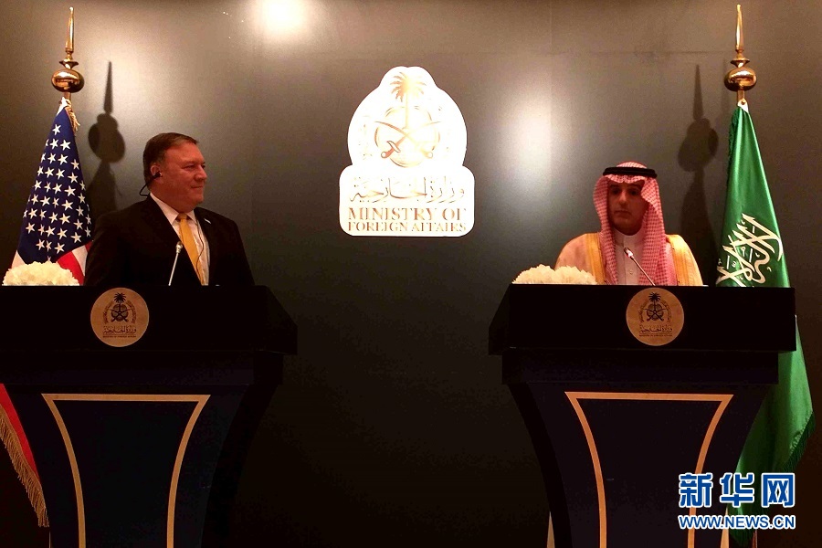 蓬佩奧當(dāng)天與沙特國(guó)王薩勒曼就雙邊關(guān)系、地區(qū)和國(guó)際形勢(shì)舉行了會(huì)談。在會(huì)談結(jié)束后與沙特外交大臣朱拜爾舉行的簡(jiǎn)短記者會(huì)上,蓬佩奧指責(zé)伊朗向也門(mén)胡塞武裝組織提供武器、干預(yù)敘利亞和伊拉克事務(wù),從而威脅整個(gè)地區(qū)安全穩(wěn)定。
