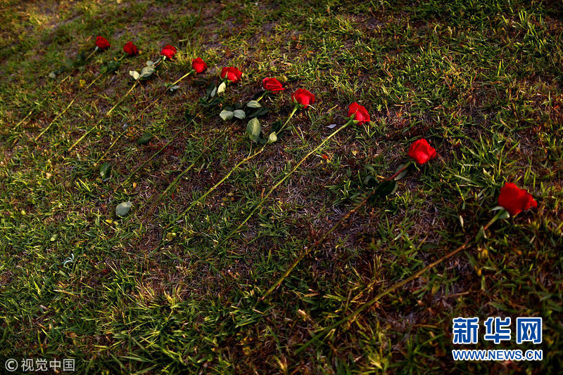 美國民眾獻(xiàn)花悼念圣菲高中槍擊案遇難者