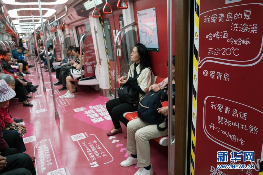這是5月23日拍攝的帶有青島元素的地鐵車廂。青新華社記者張鋮攝