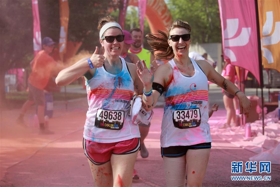 6月17日,在美國芝加哥,人們在湖濱大道參加彩色跑。當(dāng)日,美國芝加哥舉行5公里彩色跑,吸引數(shù)千人參加。 新華社記者汪平 攝