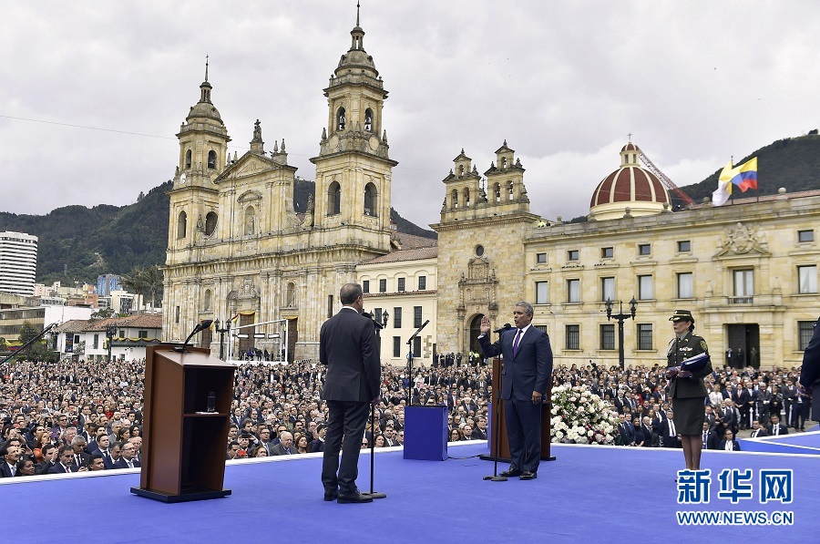 新華社波哥大8月7日電(記者何珊)哥倫比亞新任總統(tǒng)杜克7日在首都波哥大市中心玻利瓦爾廣場宣誓就職,正式開始為期四年的總統(tǒng)任期。