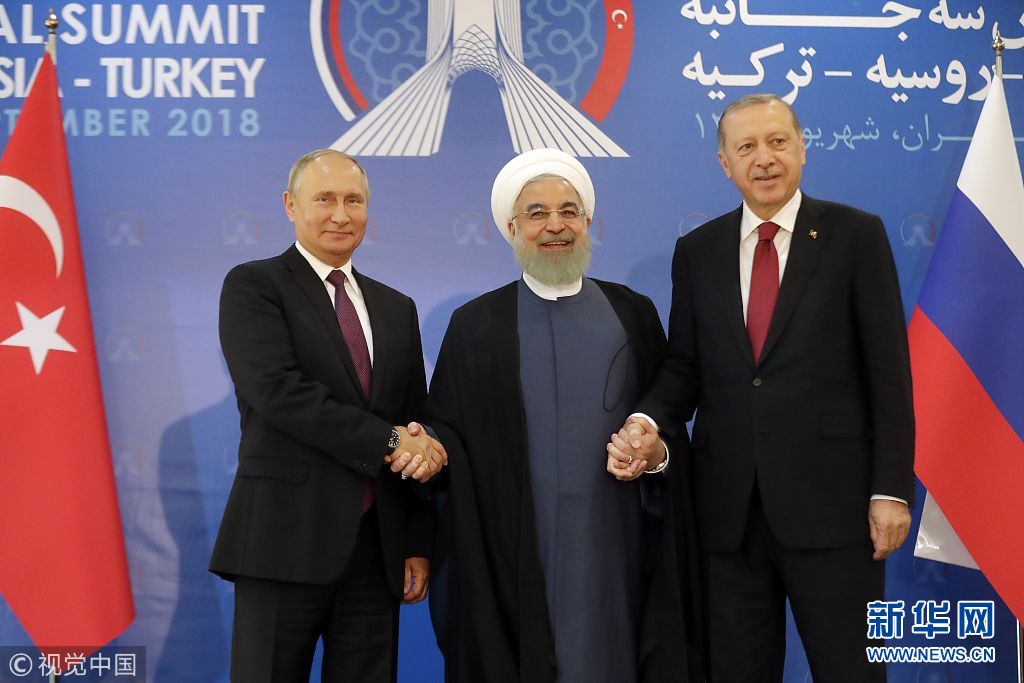 當?shù)貢r間2018年9月7日,伊朗德黑蘭,當日,俄羅斯、土耳其和伊朗三國首腦齊聚伊朗首都德黑蘭舉行峰會,討論