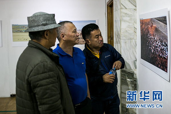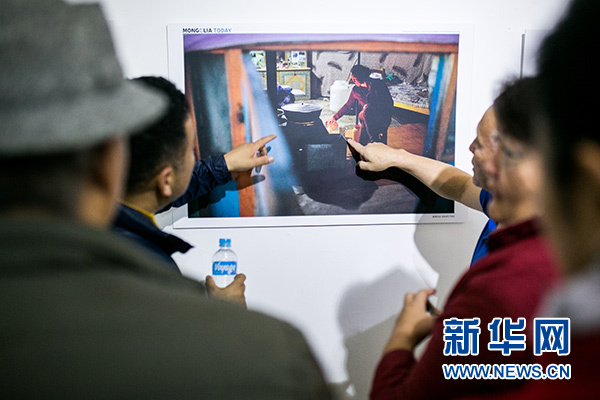 10月14日,在蒙古國(guó)首都烏蘭巴托,人們觀看“今日蒙古國(guó)”國(guó)際攝影采風(fēng)活動(dòng)作品展。新華社記者 白雪騏 攝