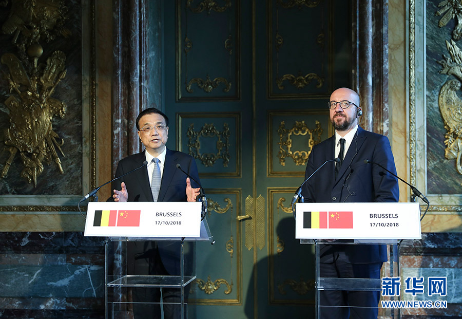 新華社布魯塞爾10月17日電(記者鄭明達(dá) 翟偉)當(dāng)?shù)貢r(shí)間10月17日上午,國務(wù)院總理李克強(qiáng)在布魯塞爾埃格蒙宮與比利時(shí)首相米歇爾共同會(huì)見記者。