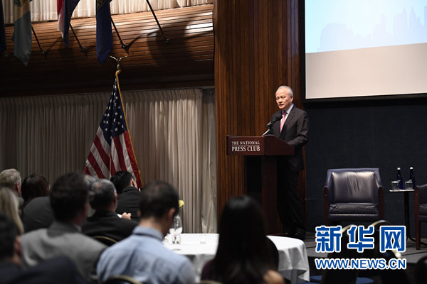 崔天凱當(dāng)天在美全國記者協(xié)會舉行的紀(jì)錄片《善良的天使》觀影活動上致辭說,許多人對近期中美關(guān)系形勢深感憂慮,在這充滿挑戰(zhàn)的時刻,中美關(guān)系發(fā)展更需要“善良的天使”。