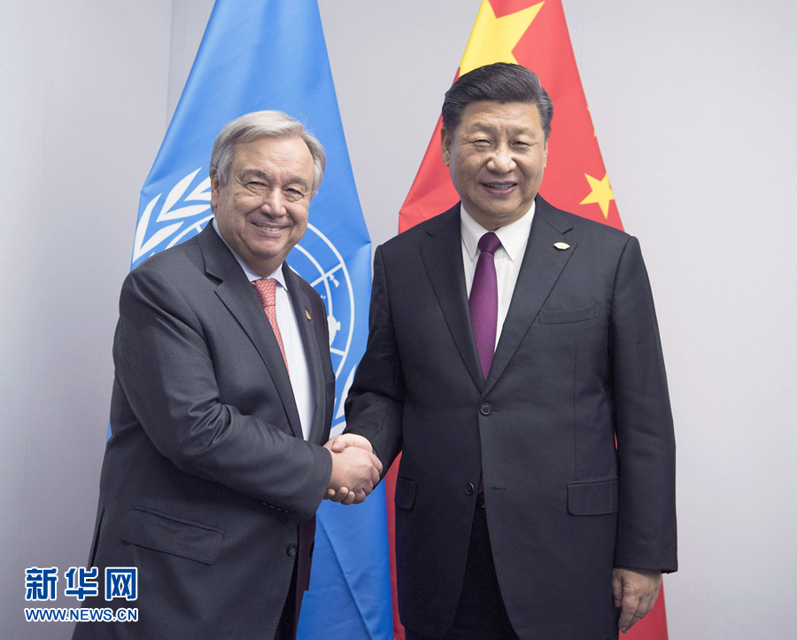 當(dāng)?shù)貢r(shí)間11月30日,國家主席習(xí)近平在布宜諾斯艾利斯會(huì)見聯(lián)合國秘書長(zhǎng)古特雷斯。 新華社記者 李學(xué)仁 攝