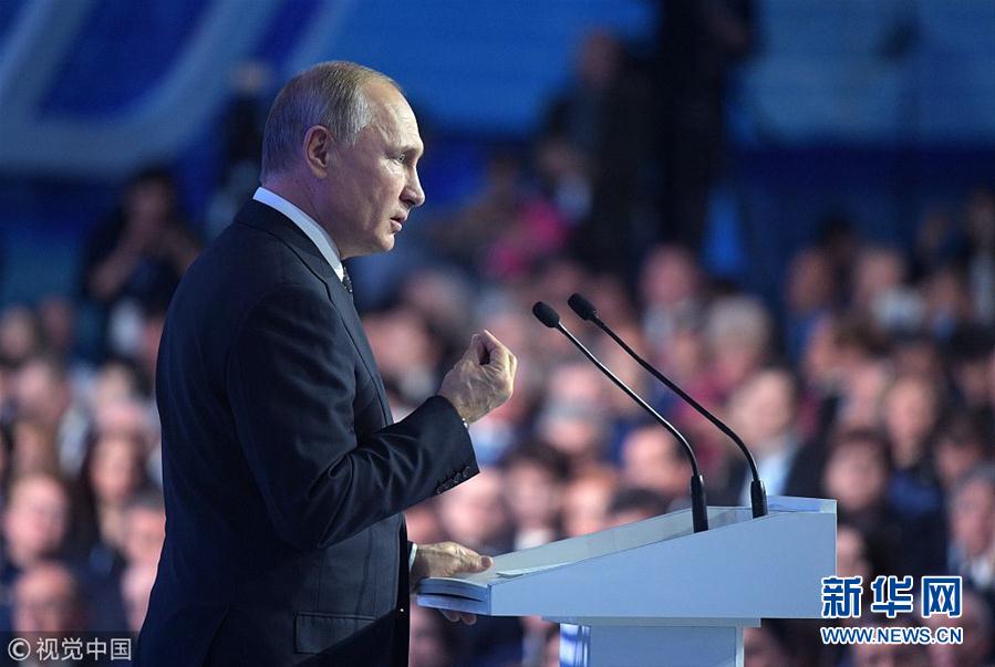 當(dāng)?shù)貢r間2018年12月8日,俄羅斯莫斯科,俄羅斯執(zhí)政黨“統(tǒng)一俄羅斯黨”年度會議舉行,俄羅斯總統(tǒng)普京和總理梅德韋杰夫出席會議。(圖片來源:視覺中國)