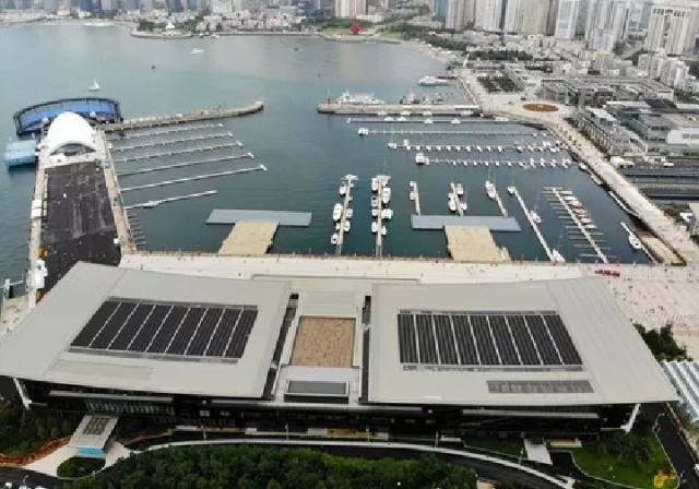 上合青島峰會(huì)主會(huì)場——青島國際會(huì)議中心經(jīng)過短暫的會(huì)后內(nèi)部服務(wù)功能規(guī)劃調(diào)整正式向游客開放(7月1日無人機(jī)拍攝)。新華社記者 李紫恒 攝