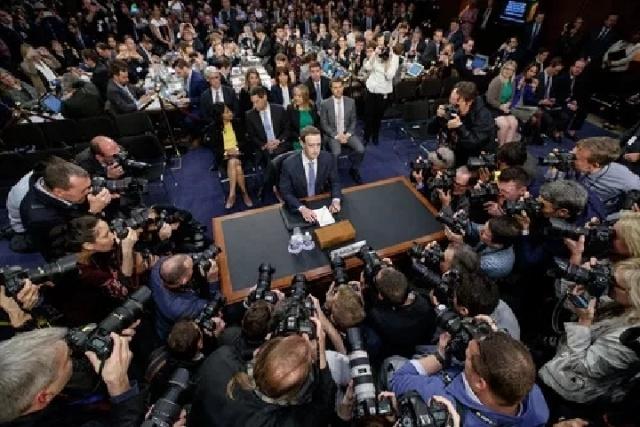 美國社交媒體平臺臉書公司首席執(zhí)行官馬克·扎克伯格2018年4月10日出席聽證會(huì),就用戶數(shù)據(jù)泄露事件接受國會(huì)質(zhì)詢。新華社發(fā)(沈霆 攝)