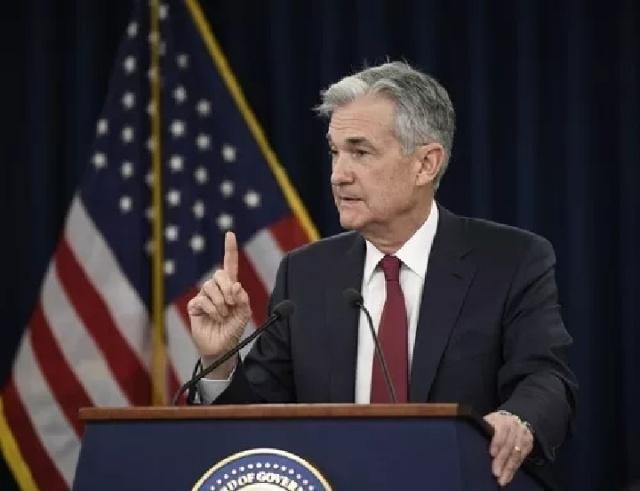 2018年12月19日,在美國首都華盛頓,美國聯(lián)邦儲(chǔ)備委員會(huì)主席鮑威爾在新聞發(fā)布會(huì)上講話。 新華社記者 劉杰 攝