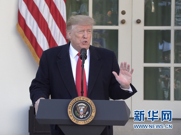 1月25日,美國(guó)總統(tǒng)特朗普在華盛頓白宮發(fā)表講話。新華社記者 胡友松 攝?