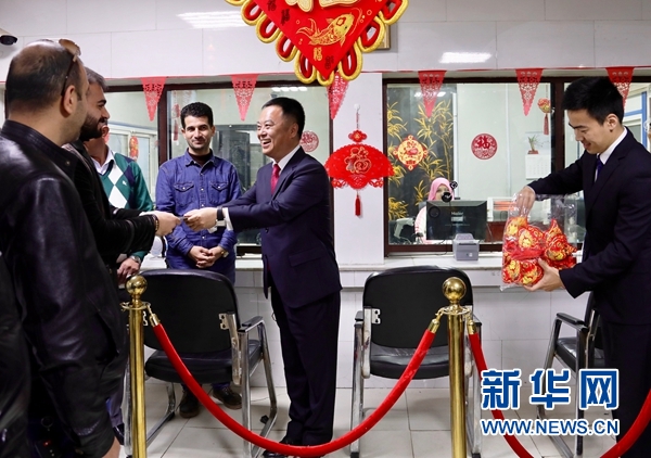 條件簡陋的簽證廳里,掛起了大大的中國結,貼上了紅紅的福字和剪紙,洋溢著濃濃的年味。上午,中國駐伊拉克大使陳偉慶走進簽證廳,親手為伊拉克民眾遞上簽證,還給大家送上中國結,與前來辦證的伊拉克民眾共迎中國年。