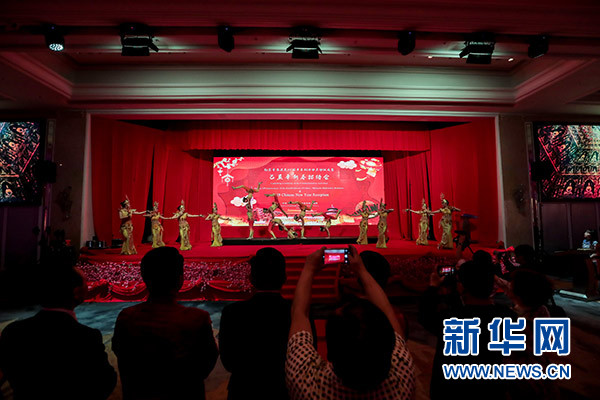 1月30日,在科威特的費(fèi)爾瓦尼耶省,來自南京藝術(shù)團(tuán)的演員在中國駐科威特使館新春招待會上表演民族舞蹈。新華社發(fā)(約瑟夫 攝)