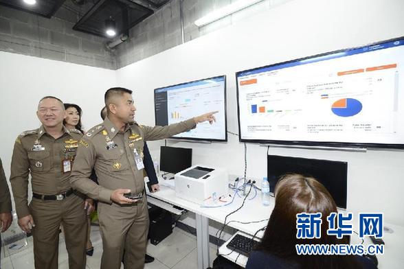 2月15日,泰國移民局局長素拉切(中)在曼谷素萬那普機場了解新版電子落地簽證使用者數(shù)據(jù)。 泰國移民局15日在素萬那普機場舉辦新版電子落地簽證系統(tǒng)正式上線儀式,以期進一步方便包括中國游客在內(nèi)的外國游客。 新華社發(fā)(泰國移民局供圖)