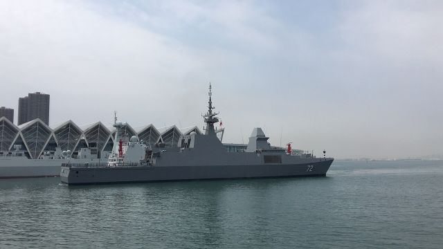 據(jù)了解,新加坡海軍“堅強”號護(hù)衛(wèi)艦(舷號72),排水量3200噸,長114.8米,寬16.3米,桅高35米,航速27節(jié)。