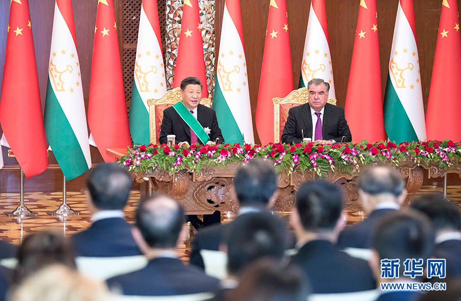 拉赫蒙表示,熱烈歡迎習近平主席再次訪問塔吉克斯坦,感謝中方為亞信第五次峰會成功舉辦作出重要貢獻,祝賀中華人民共和國成立70周年,祝愿友好的中國永遠國泰民安。塔方把深化同中國全面戰(zhàn)略伙伴關系作為外交優(yōu)先方向之一,感謝中方長期以來的支持和幫助,愿在“一帶一路”框架內加強雙方能源、石化、水電、基礎設施建設等領域重點項目合作,助推塔吉克斯坦實現(xiàn)工業(yè)化目標。雙方要密切青年、教育、文化等人文交流。塔方致力于同中方一道打擊“三股勢力”和跨國犯罪,加強執(zhí)法安全合作,密切在上海合作組織、亞信等多邊事務中協(xié)調。