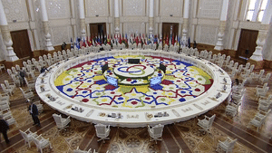 15日上午,杜尚別納烏魯茲宮,習(xí)主席出席亞洲相互協(xié)作與信任措施會(huì)議第五次峰會(huì)。圓桌會(huì)議開始后,亞信主席國元首拉赫蒙總統(tǒng)邀請習(xí)主席第一個(gè)發(fā)言。