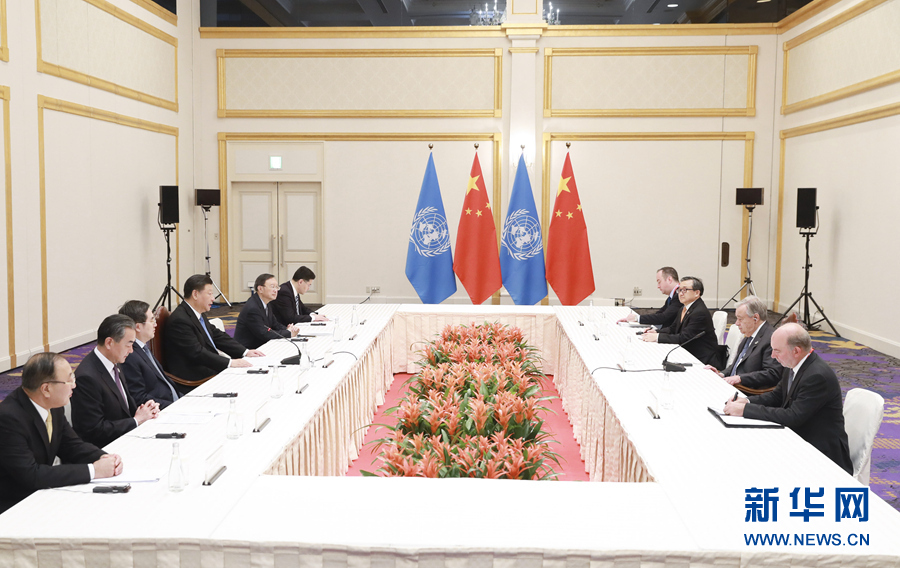 6月28日,國家主席習近平在大阪會見聯(lián)合國秘書長古特雷斯。 新華社記者 龐興雷 攝
