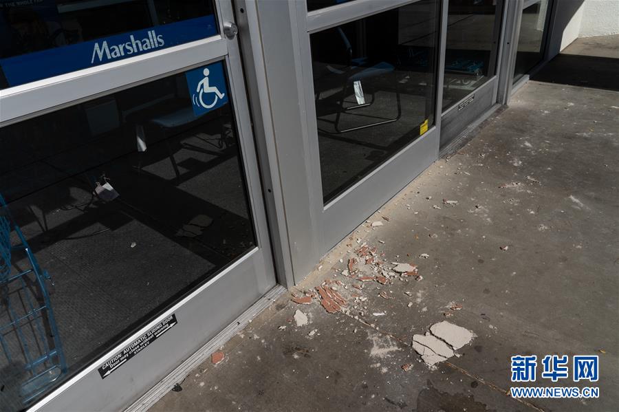 7月4日,在美國加利福尼亞州里奇克雷斯特,一家商店門口散落著墻體碎片。美國加利福尼亞州南部4日上午發(fā)生6.4級地震,洛杉磯地區(qū)有明顯震感,部分區(qū)域道路開裂,但目前沒有人員傷亡的報道。新華社發(fā)(錢衛(wèi)忠攝)