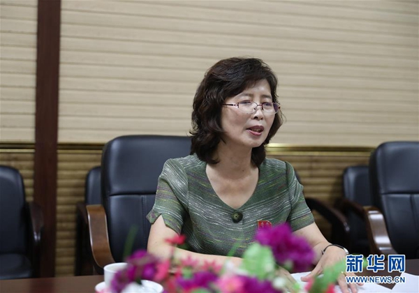 7月24日,朝鮮國家觀光總局觀光宣傳局局長(zhǎng)金春姬在平壤接受新華社記者采訪。新華社記者 程大雨 攝