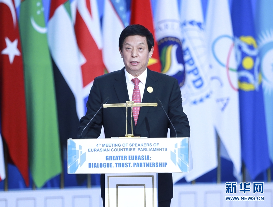 9月24日,第四屆歐亞國家議長會(huì)議在哈薩克斯坦首都努爾蘇丹舉行。全國人大常委會(huì)委員長栗戰(zhàn)書出席會(huì)議開幕式并作主旨發(fā)言。 新華社記者 翟健嵐 攝
