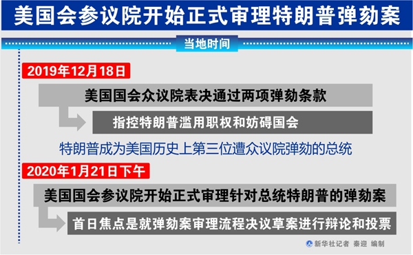 根據(jù)參議院多數(shù)黨(共和黨)領(lǐng)袖麥康奈爾當(dāng)天正式提交的決議草案,彈劾案審理主要包括開案陳述、交叉提問、參議院就是否傳喚更多證人或檢視更多證據(jù)進行投票表決等階段。