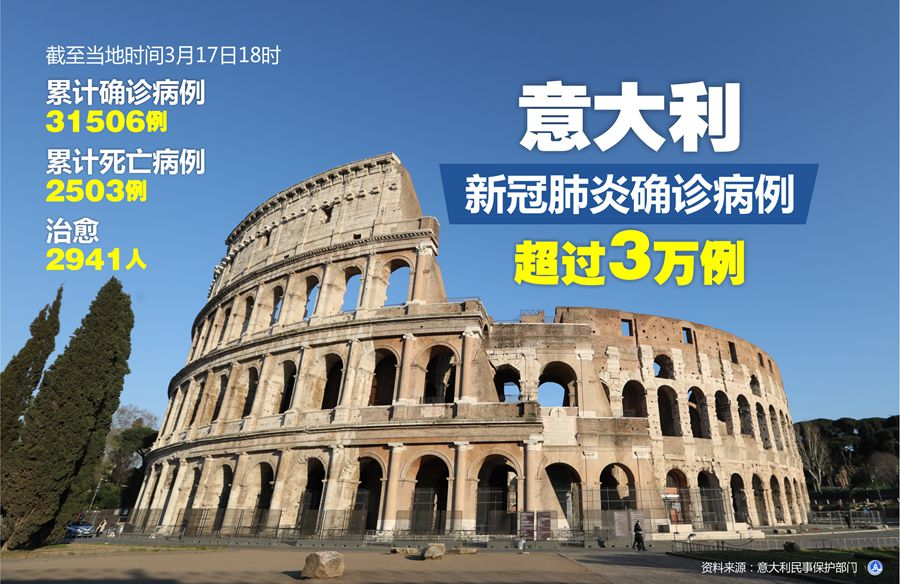 新華社羅馬3月17日電(記者李潔)意大利民事保護(hù)部門負(fù)責(zé)人、新冠病毒應(yīng)急委員會專員博雷利17日說,截至當(dāng)天18時(shí),意大利累計(jì)新冠肺炎確診病例升至31506例,累計(jì)死亡病例升至2503例,另有2941人治愈。