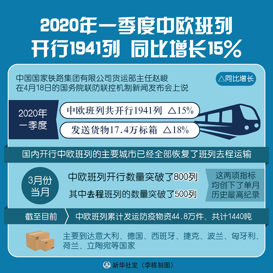 疫情之下,中歐班列成為防疫物資運輸?shù)闹匾锪魍ǖ?。?jù)趙峻介紹,截至目前,中歐班列累計發(fā)運防疫物資44.8萬件、共計1440噸,主要到達意大利、德國、西班牙、捷克、波蘭、匈牙利、荷蘭、立陶宛等國家,并以這些國家為節(jié)點,分撥到更多的歐洲國家,有力促進了國際防疫合作。