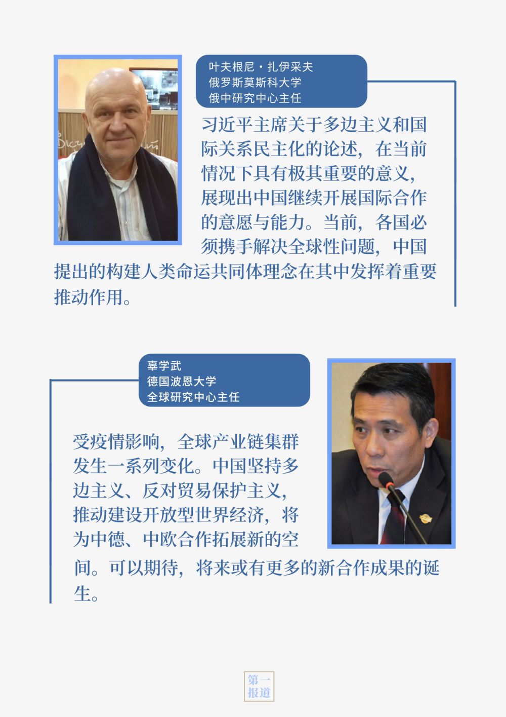 習近平強調(diào),中國將堅持多邊主義和國際關(guān)系民主化,以開放、合作、共贏胸懷謀劃發(fā)展,堅定不移推動經(jīng)濟全球化朝著開放、包容、普惠、平衡、共贏的方向發(fā)展,推動建設(shè)開放型世界經(jīng)濟。