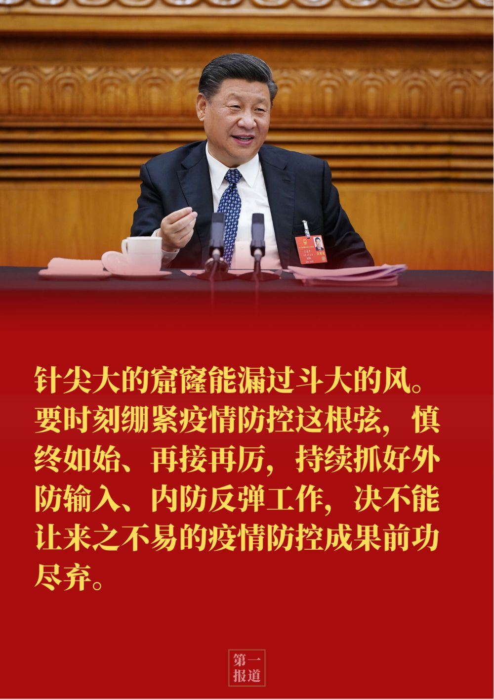 習近平指出:“針尖大的窟窿能漏過斗大的風。要時刻繃緊疫情防控這根弦,慎終如始、再接再厲,持續(xù)抓好外防輸入、內(nèi)防反彈工作,決不能讓來之不易的疫情防控成果前功盡棄。”