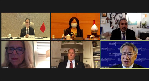 這次視頻對(duì)話由中國(guó)人民外交學(xué)會(huì)和美國(guó)美亞學(xué)會(huì)合作舉辦。上述兩機(jī)構(gòu)負(fù)責(zé)人等出席了對(duì)話。