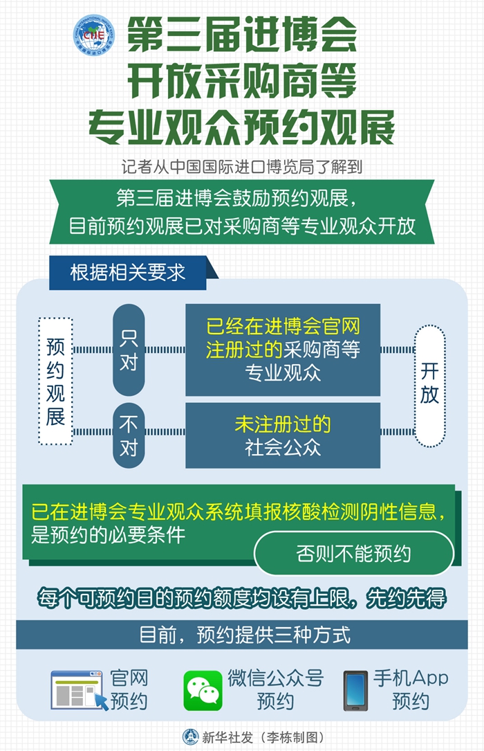 根據(jù)相關(guān)要求,預(yù)約觀展只對(duì)已經(jīng)在進(jìn)博會(huì)官網(wǎng)注冊(cè)過(guò)的采購(gòu)商等專(zhuān)業(yè)觀眾開(kāi)放,不對(duì)未注冊(cè)過(guò)的社會(huì)公眾開(kāi)放。