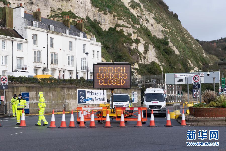 這是12月22日在英國多佛港拍攝的一塊顯示“法國邊境關閉”的電子屏。新華社發(fā)(雷伊·唐攝)