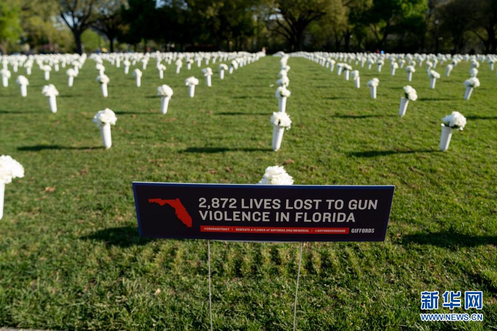 當(dāng)日,四萬(wàn)朵白色絹花被擺放在國(guó)會(huì)大廈與華盛頓紀(jì)念碑之間的國(guó)家廣場(chǎng)草坪上,以紀(jì)念在全美槍擊事件中喪生的人們。據(jù)美國(guó)媒體報(bào)道,2020年美國(guó)造成四人及以上傷亡的嚴(yán)重槍擊案數(shù)量創(chuàng)下歷史新高,較2019年激增47%。同時(shí),美國(guó)槍支銷(xiāo)售數(shù)量也突破歷史紀(jì)錄,民眾對(duì)公共安全擔(dān)憂加劇。
