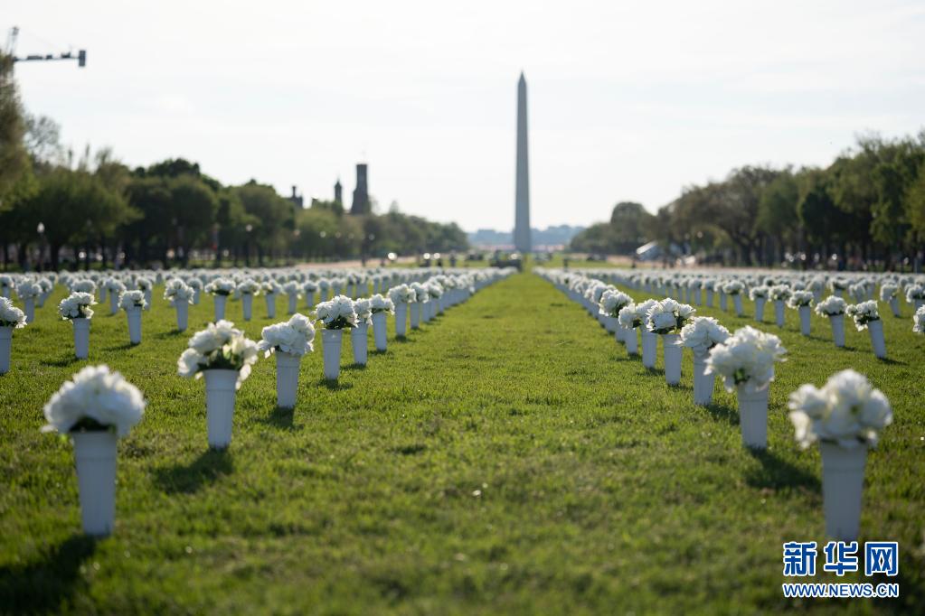 這是4月13日拍攝的美國華盛頓國家廣場草坪上擺放的白色絹花。