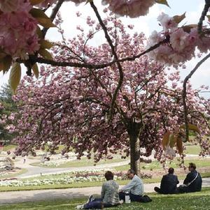 4月21日,法國巴黎一處公園的山坡上鮮花盛開。