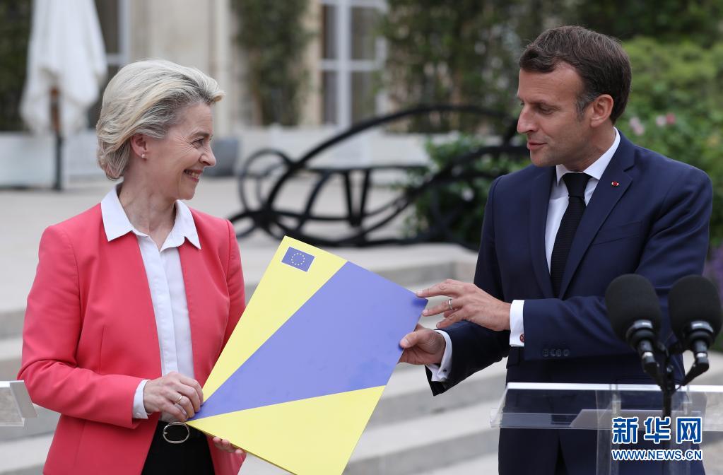6月23日,法國總統(tǒng)馬克龍(右)與歐盟委員會主席馮德萊恩在巴黎總統(tǒng)府愛麗舍宮出席新聞發(fā)布會。