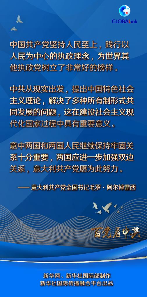 阿爾博雷西說,一百年來,中國共產(chǎn)黨帶領(lǐng)中國人民取得了巨大成就。中共積累的經(jīng)驗(yàn)是國際共產(chǎn)主義運(yùn)動(dòng)史上的亮點(diǎn),中共在國際共運(yùn)歷史上樹立了重要標(biāo)桿。