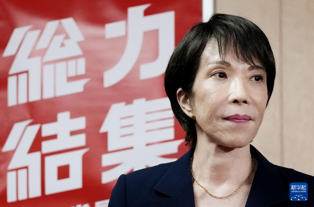 10月10日,在日本东京,日本自民党总裁高市早苗会见记者。新华社/共同社