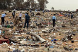 營(yíng)救人員對(duì)墜機(jī)現(xiàn)場(chǎng)進(jìn)行檢查